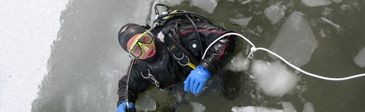 Eistauchen darf erst nach einer erfolgreichen Ausbildung durch zertifiziertes Personal durchgeführt werden.