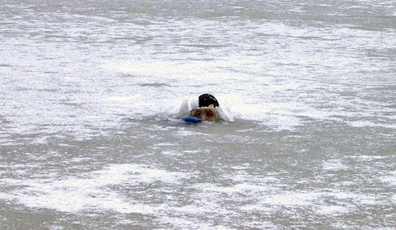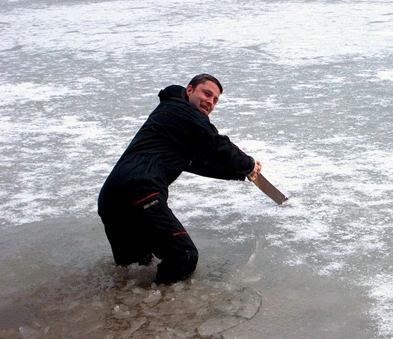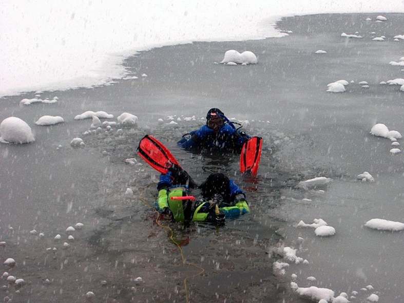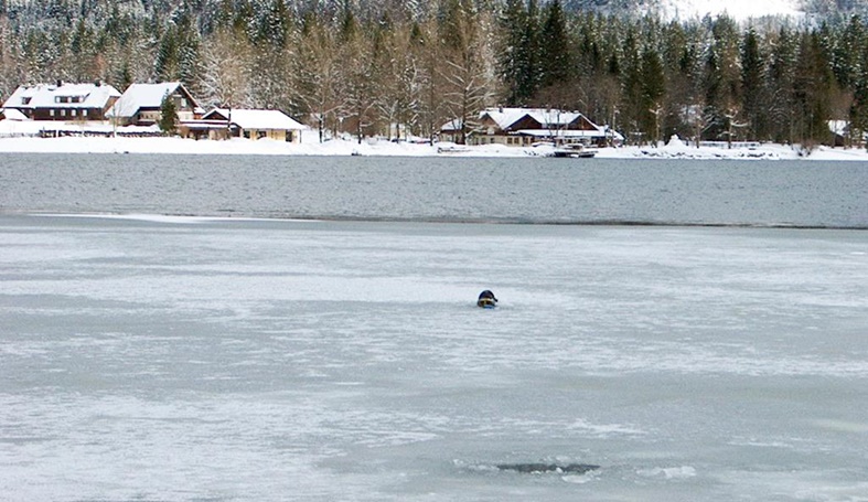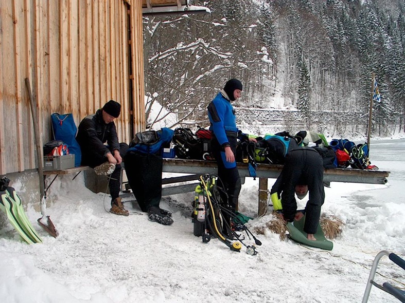 Nur dünnes mit Schneematsch bedektes Eis. Einstieg vom Ufer aus.