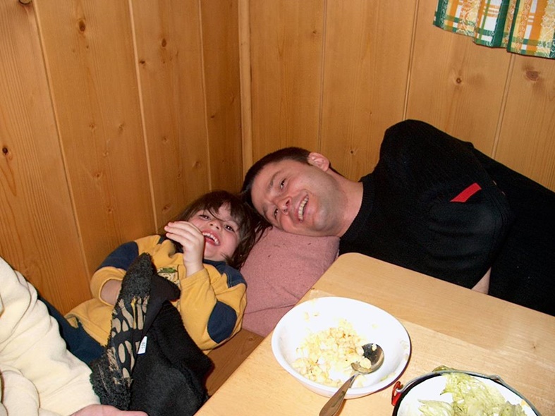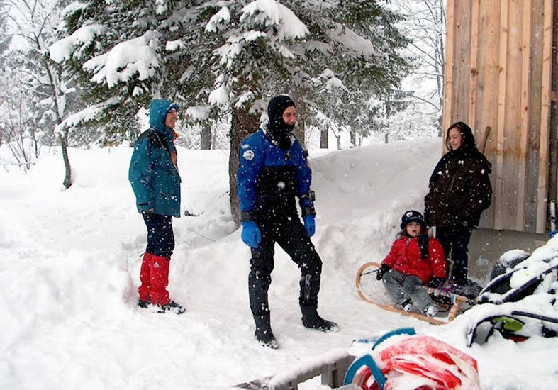 Maximum Fun mit 6-8 Schlitten am Auto angehängt durch den Ort zurück zum Hotel.